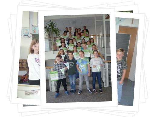 Nach einer kurzen Abschlussbesprechung in der Aula der Schule konnten die lang ersehnten (Ehren-)Wimpel, Urkunden und Fahrradführerscheine in Empfang genommen werden.