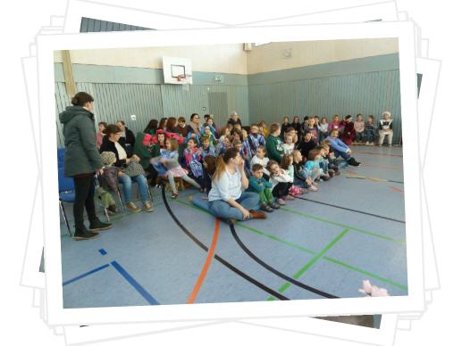Bei der Aufführung waren viele Kinder mit eingebunden, deshalb waren bereits im Vorfeld Sprechrollen verteilt und eingeübt worden, auch passende Lieder wurden einstudiert.